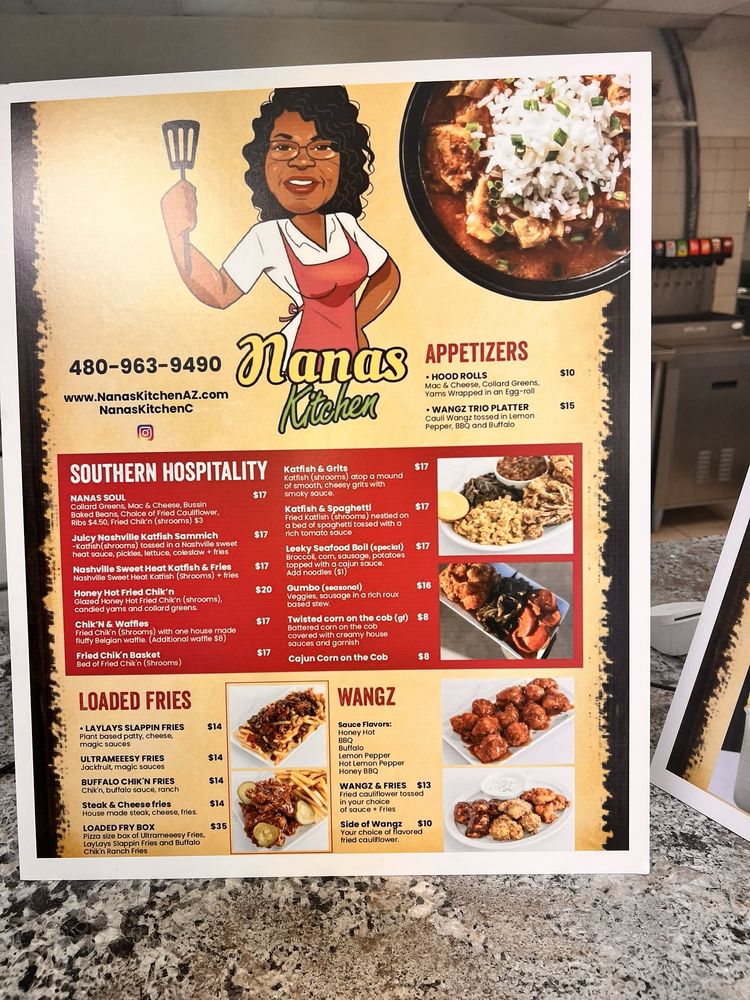 Introducing the menu of Nana's Kitchen Chandler, where soul food meets vegan innovation! Nestled in the heart of Chandler, this food truck is a haven for flavor enthusiasts. Dive into dishes like the Honey Hot Fried Chik’n served alongside candied yams and collard greens for just $19.99. Craving something unique? Try the Hood Rolls, a delightful egg roll stuffed with mac & cheese, collard greens, and yams for only $10.00.